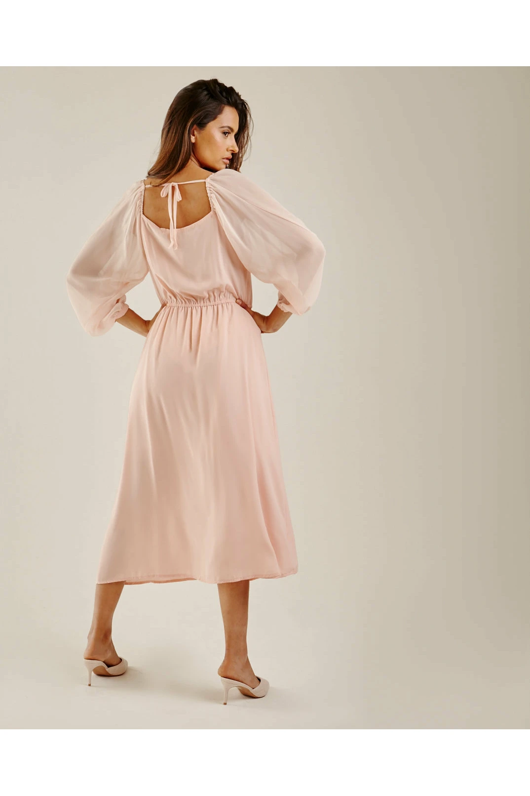 Dusty Pink Balloon Sleeve Midi Dress | Rose