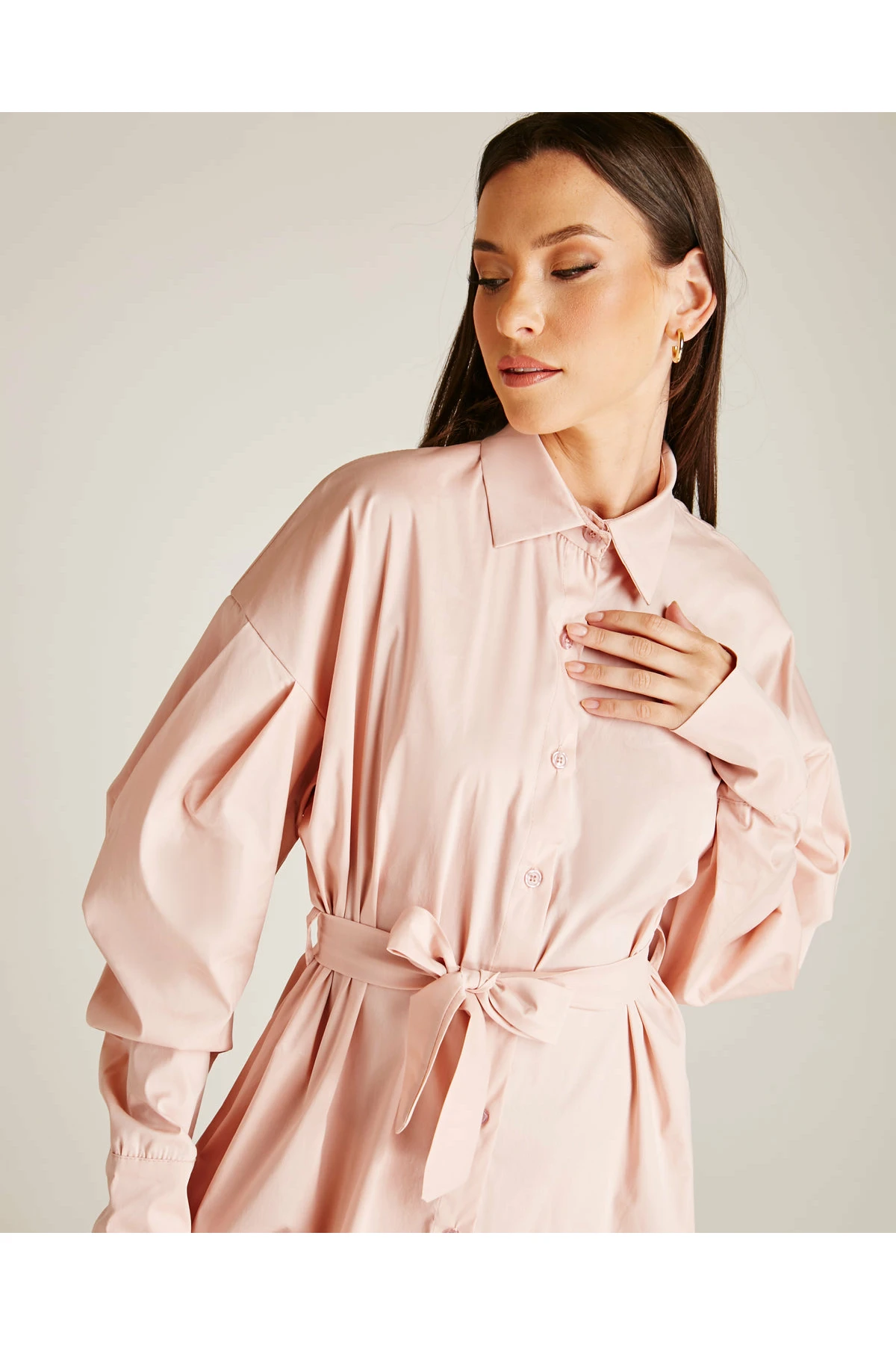 Dusty Pink Tie Up Mini Shirt Dress | Dusty Pink