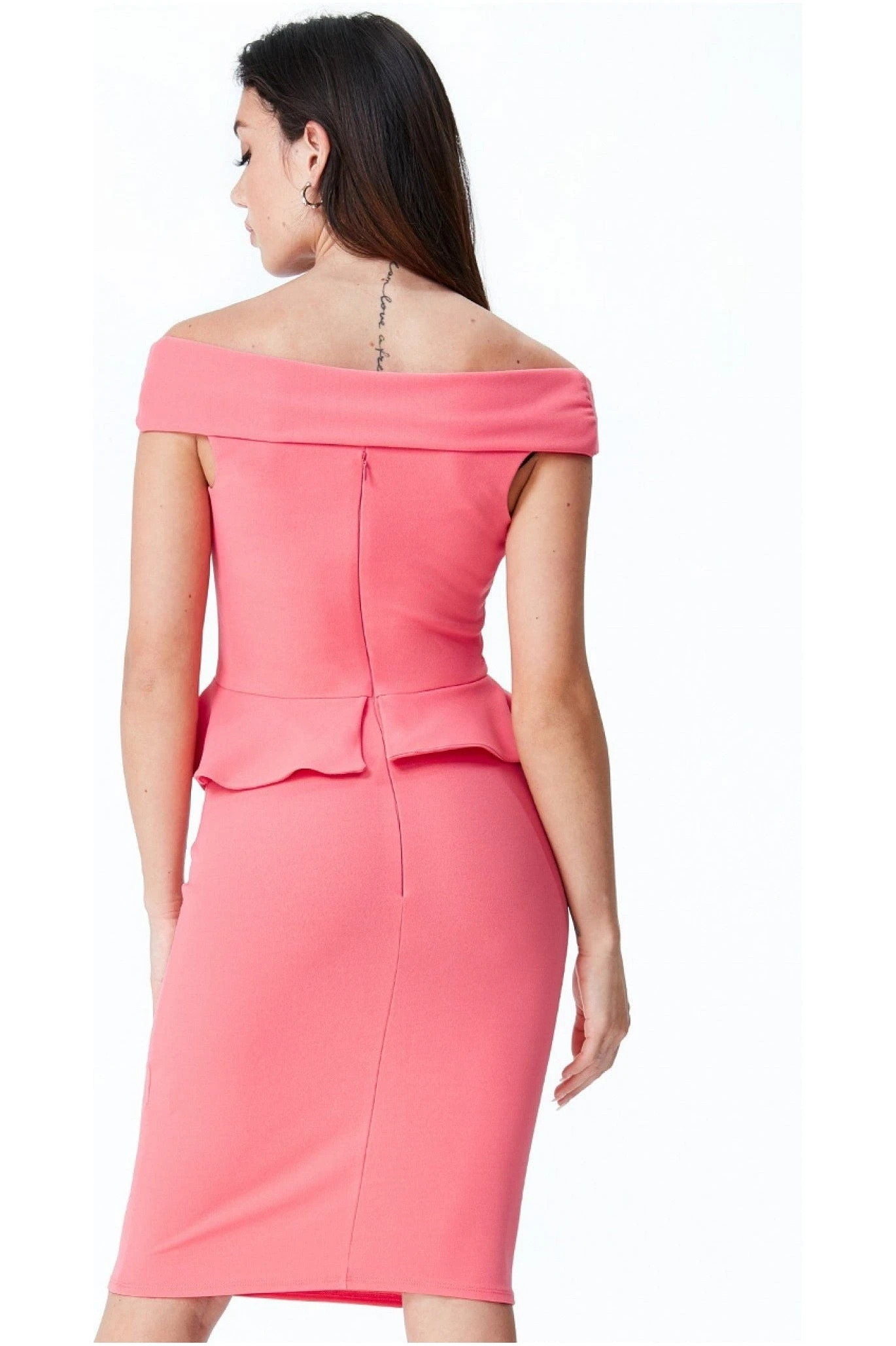 Goddiva Off The Shoulder Cross Over Midi – Coral