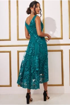 Goddiva Scalloped Neck Lace Midi Dress – Emerald