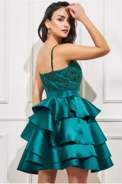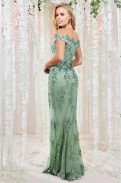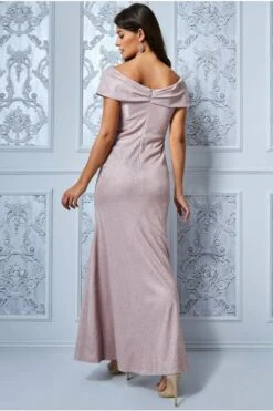 Goddiva Cowl Neck Bardot Satin Maxi Front Split – Sage Green